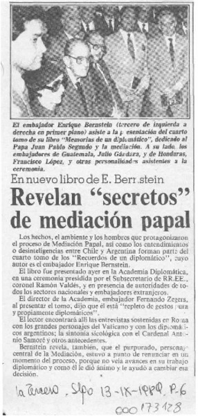 Revelan "secretos" de mediación papal [artículo].
