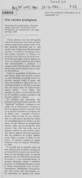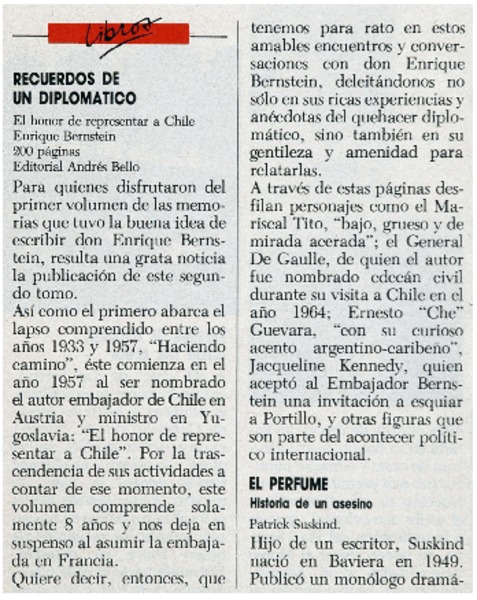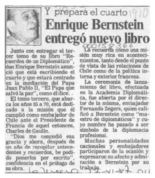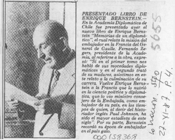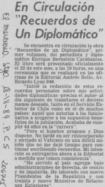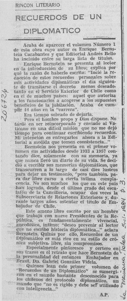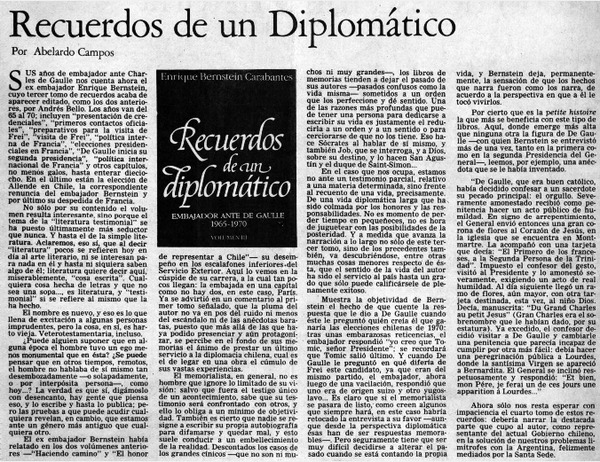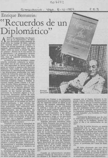 Enrique Bernstein; "Recuerdos de un diplomático" [artículo] Wellington Rojas Valdebenito.