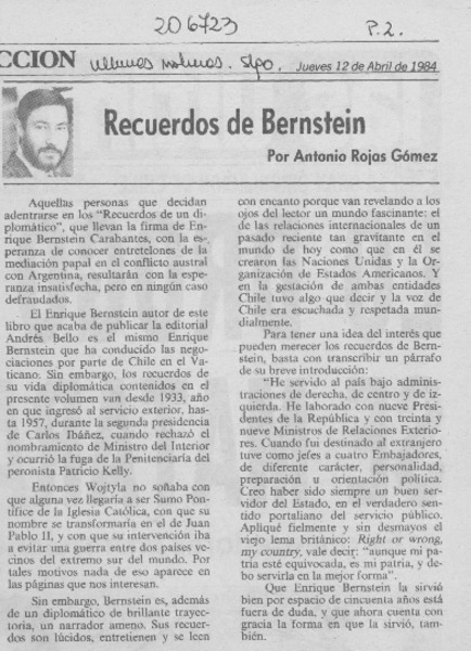 Recuerdos de Bernstein [artículo] Antonio Rojas Gómez.