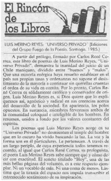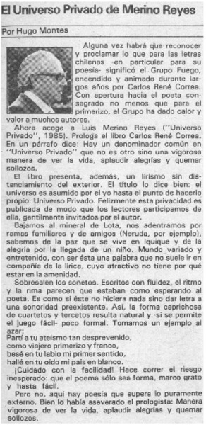 Universo privado" de Luis Merino Reyes [artículo] Matías Rafide.