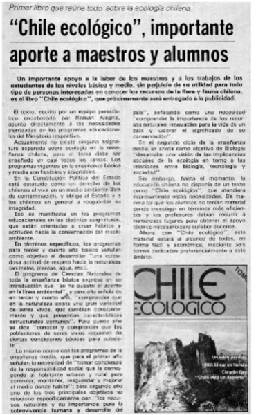 Chile ecológico", importante aporte a maestros y alumnos. [artículo]
