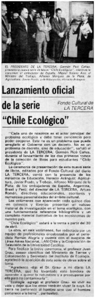 La Tercera" publicará primer compendio de ecología chileno. [artículo]