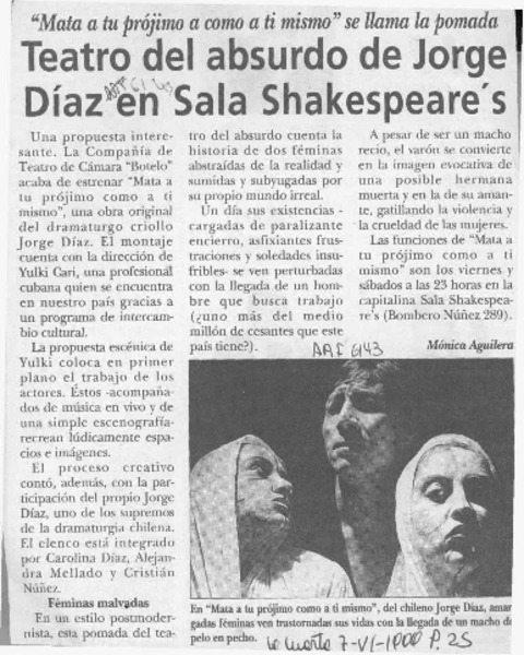 Mata a tu prójimo como a ti mismo - Locutorio, El - Autores chilenos - Díaz, Jorge - Ceremonias de la soledad - Ceremonia ortopédica
