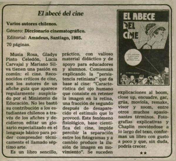Autoras chilenas - Pinto, Gladys - Abecé del cine