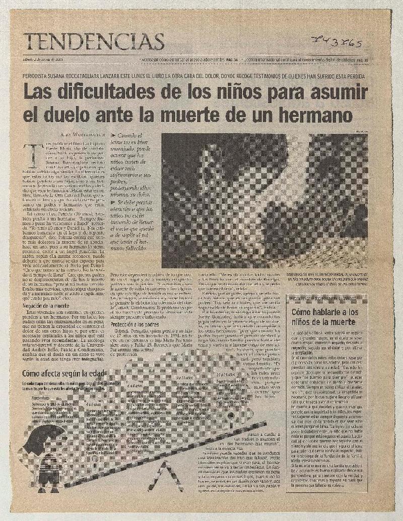 Las dificultades de los niños para asumir el duelo ante la muerte de un hermano [artículo] Aida Worthington.