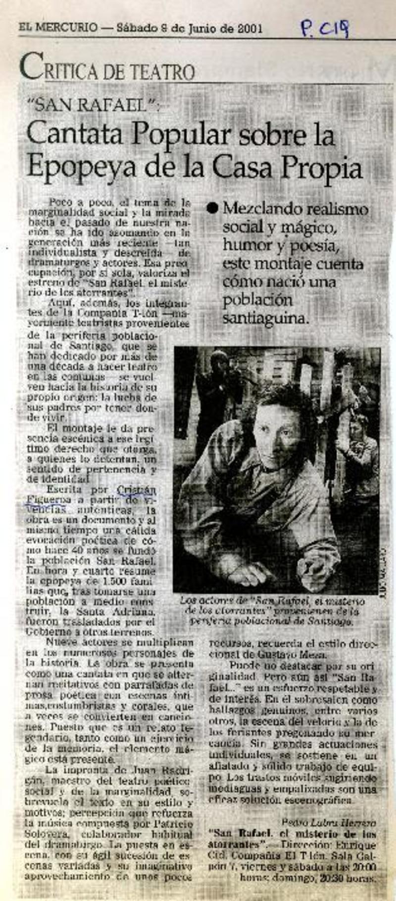 Cantata popular sobre la epopeya de la casa propia [artículo] Pedro Labra Herrera.