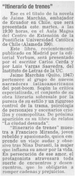 Autores ecuatorianos - Marchán, Jaime - Itinerario de trenes