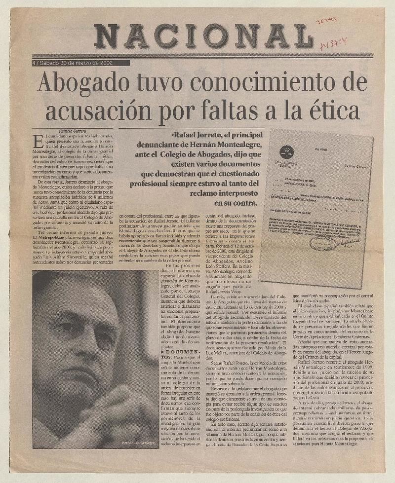 Abogado tuvo conocimiento de acusación por faltas a la ética [artículo] Patricio Carrera.