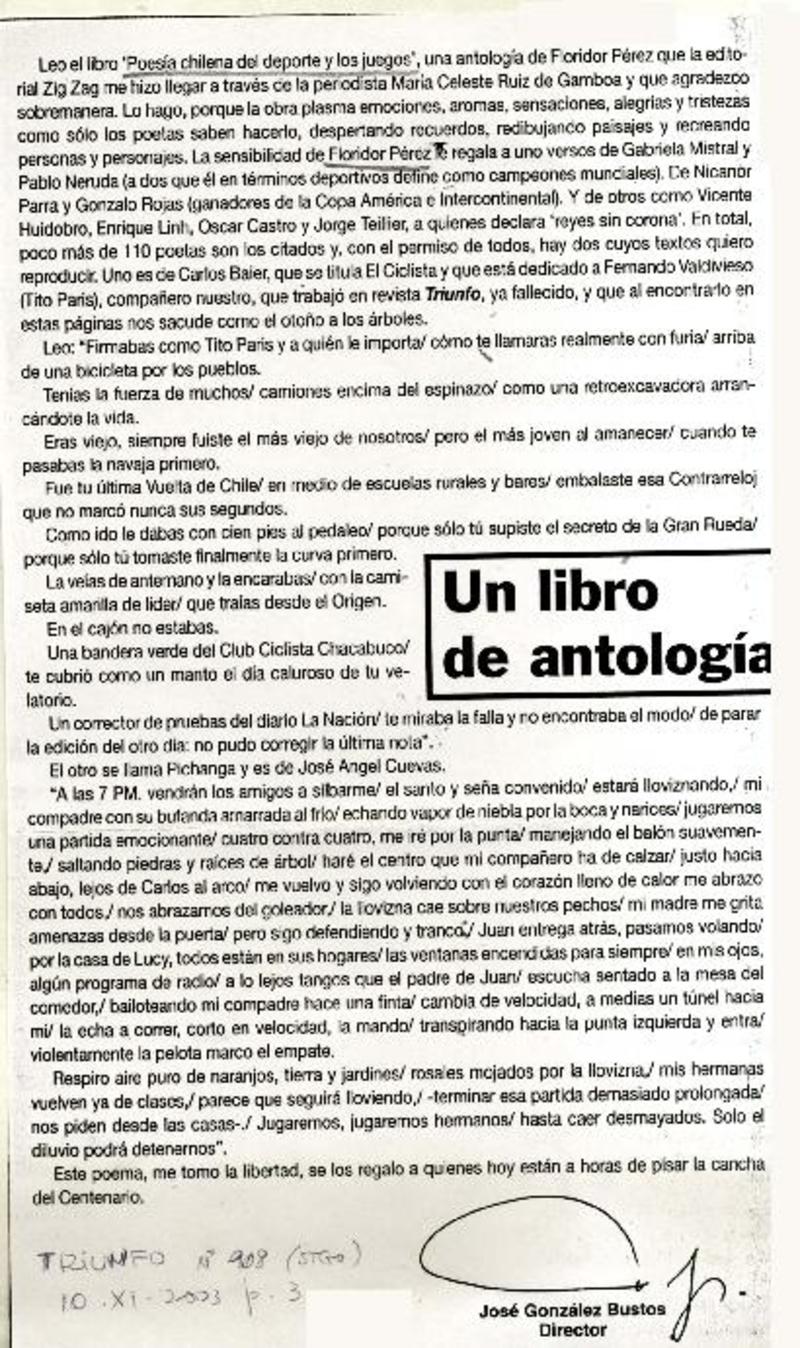 Poesía chilena del deporte y los juegos [artículo] Ricardo Bravo.