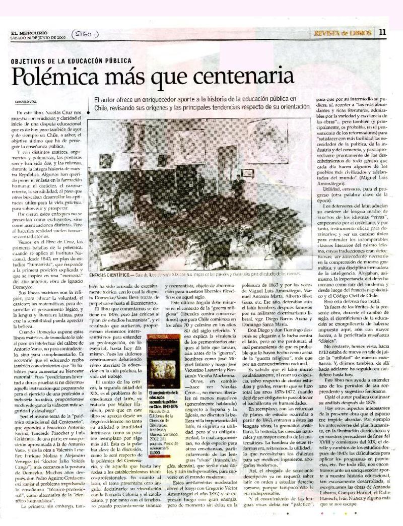 Autores chilenos - Surgimiento de la educación secundaria pública en Chile. 1843-1876 - Cruz Barros, Nicolás