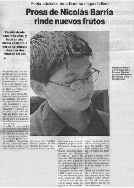 Prosa de Nicolás Barría rinde nuevos frutos. [artículo]
