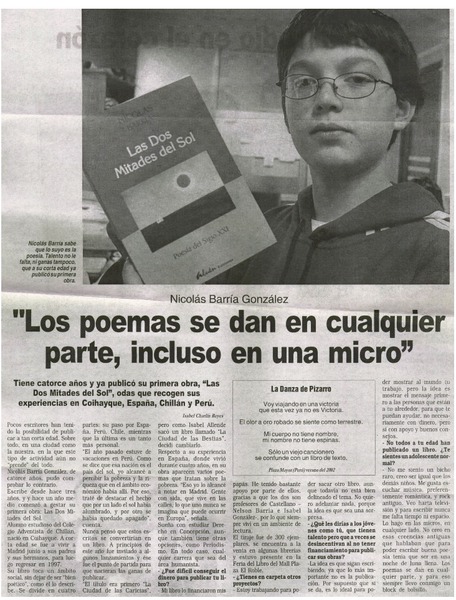 Entrevista - Barría, Nicolas - Autores chilenos - Dos mitades del sol