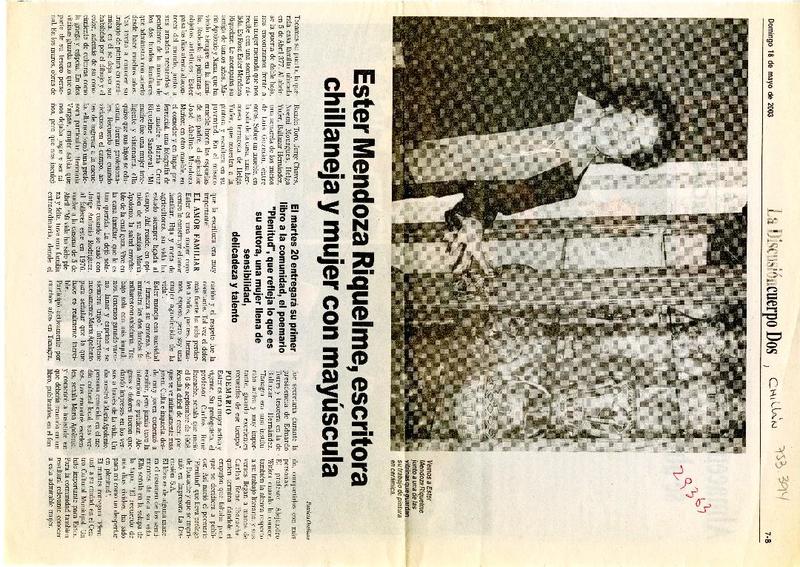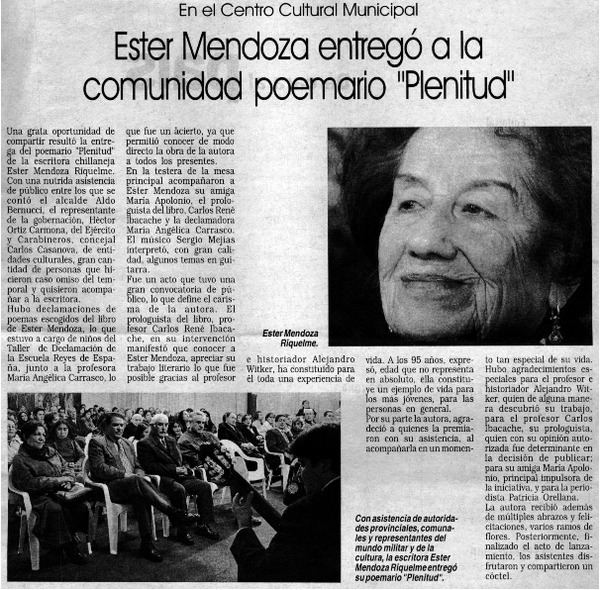 Ester Mendoza Riquelme, escritora chillaneja y mujer con mayúscula [artículo] Patricia Orellana.