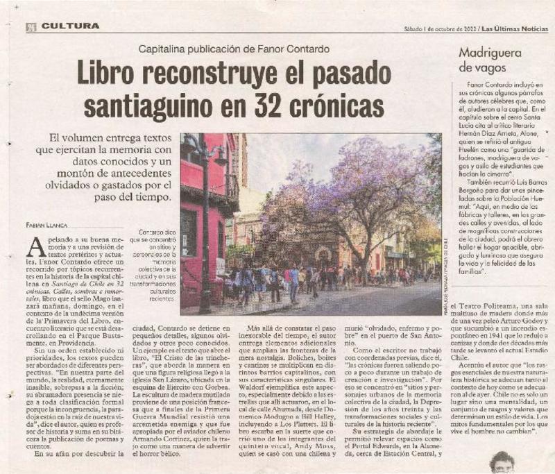 Libro reconstruye el pasado santiaguino en 32 crónicas [artículo] Fabián Llanca.