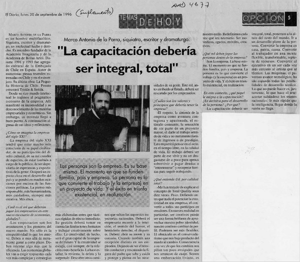 "La capacitación debería ser integral, total" [entrevista]. [artículo] :