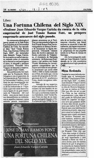Autores chilenos - Vargas Cariola, Juan Eduardo - José Tomás Ramos Font, una fortuna chilena del siglo XIX
