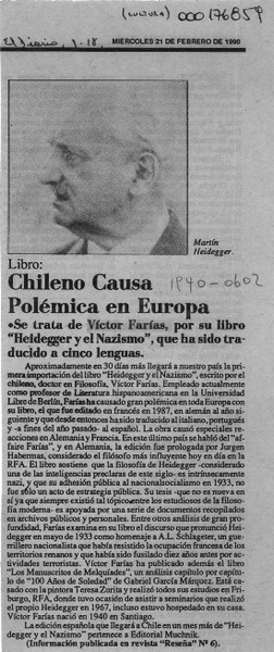 Autores chilenos - Farías, Victor - Heidegger y el nazismo