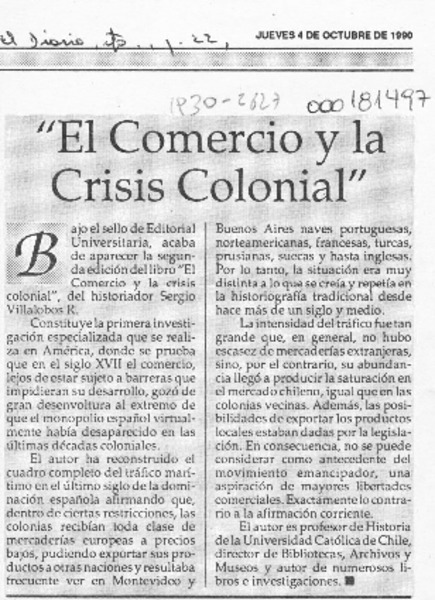 Autores chilenos - Villalobos R., Sergio - Entrevista