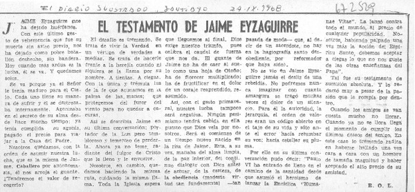 El testamento de Jaime Eyzaguirre [artículo] R. O. L.
