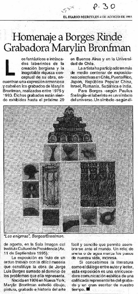 Homenaje a Borges rinde grabadora Marylin Bronfman. [artículo]