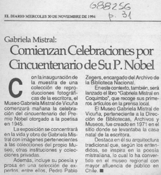 Comienzan celebraciones por cincuentenario de su P. Nobel. [artículo]
