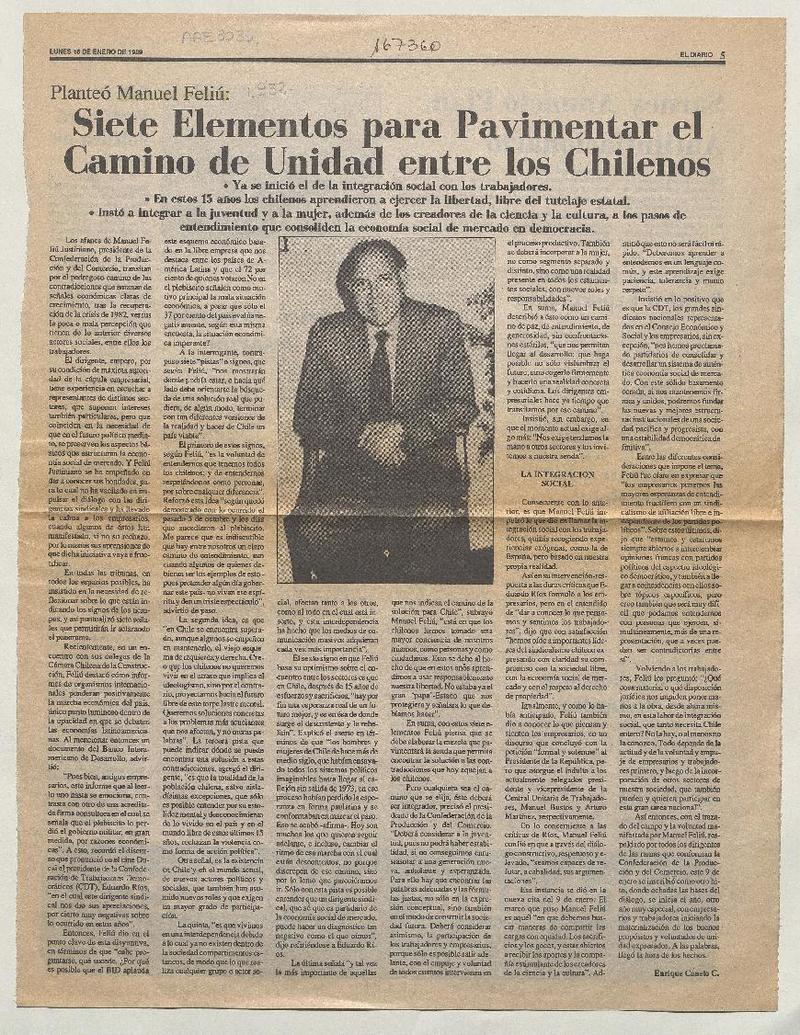 Siete elementos para pavimentar el camino de unidad entre los chilenos [artículo] Enrique Canelo C.