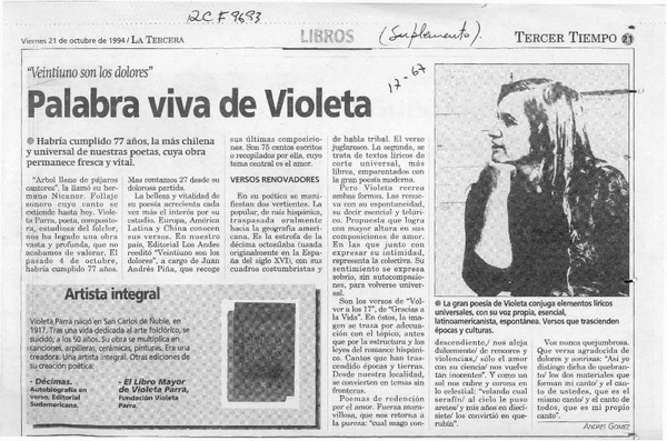 Palabra viva de Violeta [artículo] Andrés Gómez.