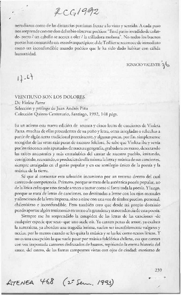 Veintiuno son los dolores [artículo] Ignacio Valente.