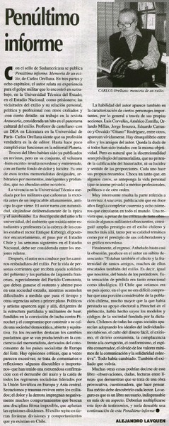 Orellana, Carlos - Penúltimo informe, memoria de un exilio - Autores chilenos