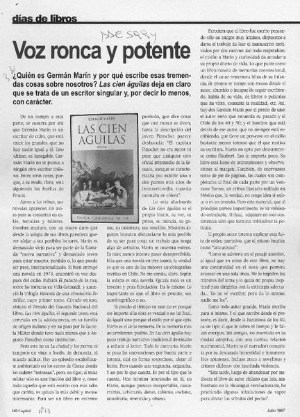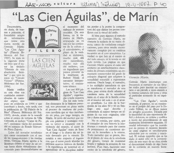 El Vuelo desterritorializante de Las cien águilas de Germán Marín [artículo]Mariela J. Fuentes Leal.