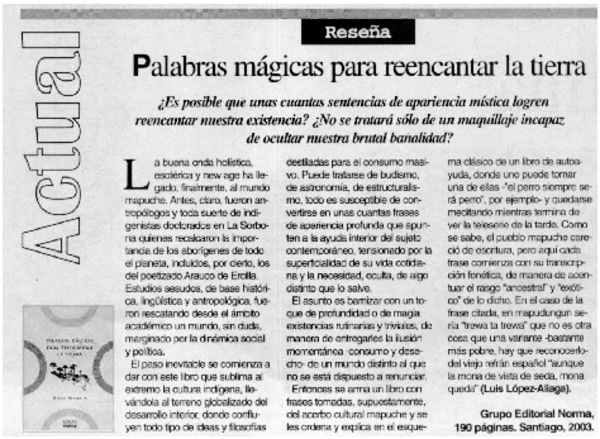 Palabras mágicas para reencantar la tierra [artículo] Luis López Aliaga.