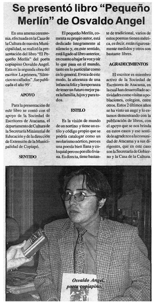 Barros Fritis, Nélida - Humos hacia lo alto - Autores chilenos - Alvarez G., Oriel - Aramburu, Eduardo - Bruna, Danilo Octavio - Historia de Petorca - Castillo Villegas, Jaime - Angel, Osvaldo - Silencios no callados - Copihue de cobre