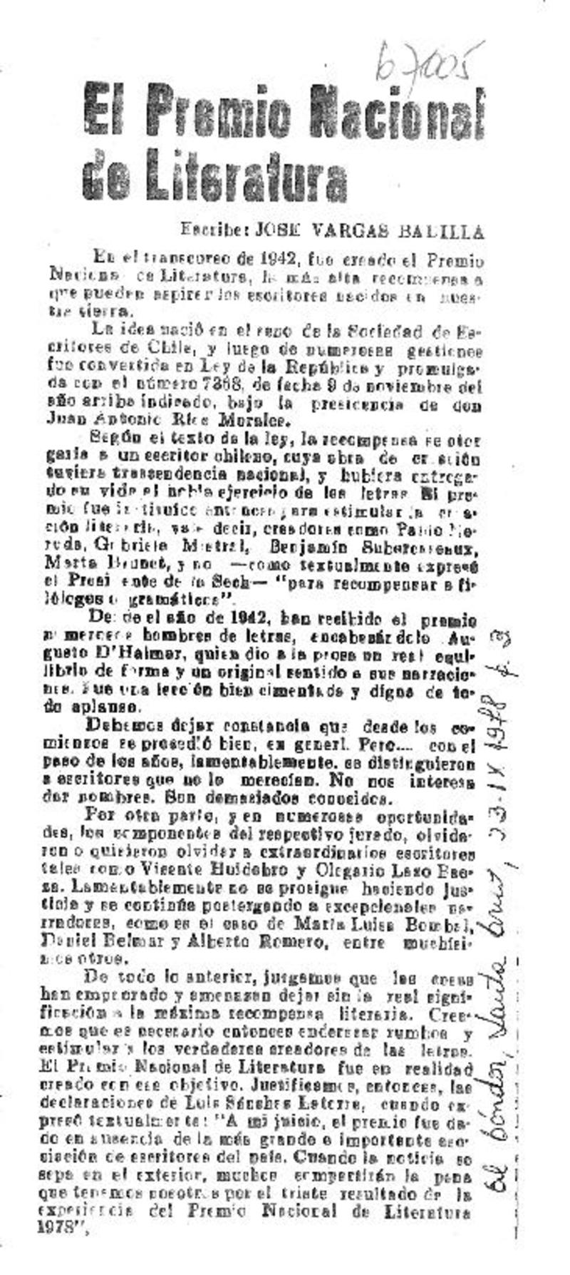 El Premio Nacional de Literatura [artículo] José Vargas Badilla.