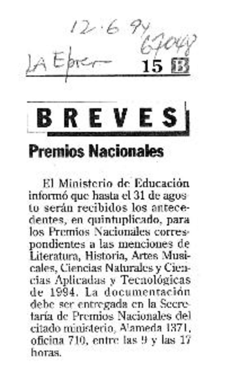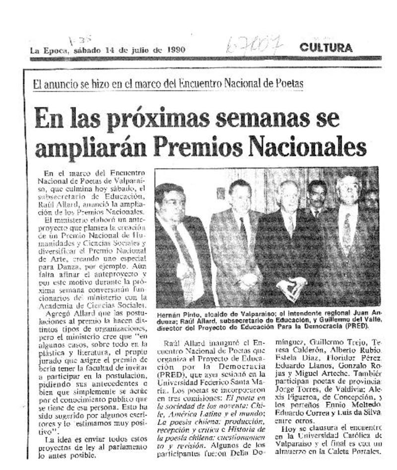 En las próximas semanas se ampliarán Premios Nacionales [artículo].