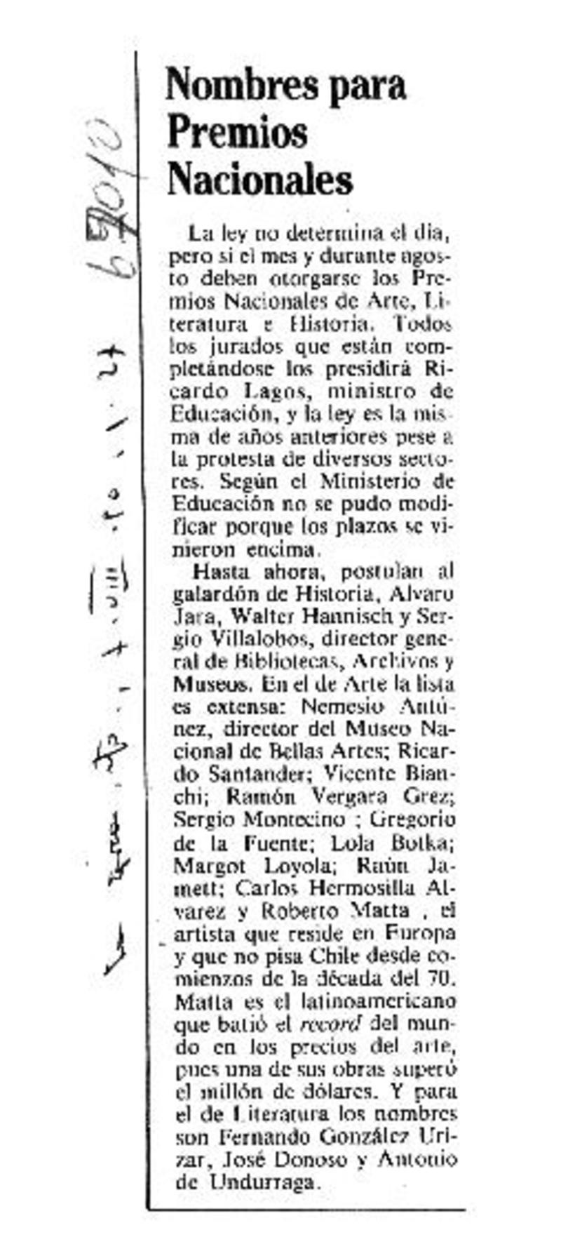 Nombres para Premios Nacionales. [artículo]