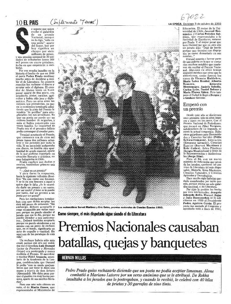 Premios Nacionales causaban batallas, quejas y banquetes [artículo] Hernán Millas.