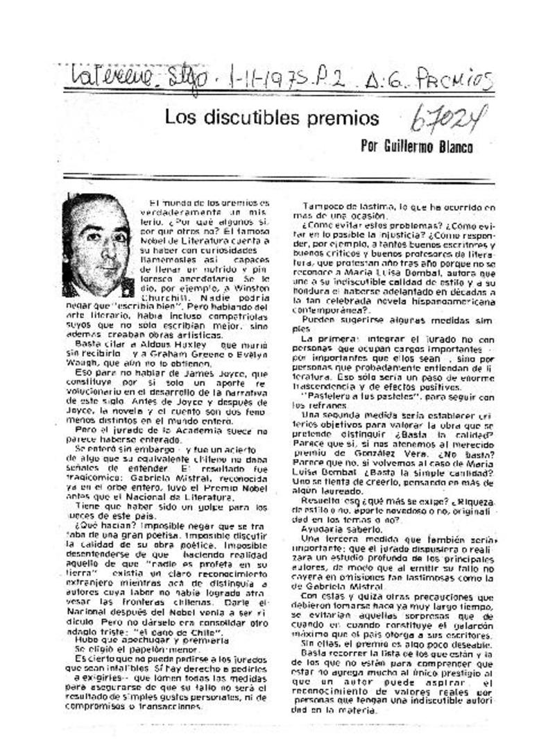 Los discutibles premios [artículo] Guillermo Blanco.