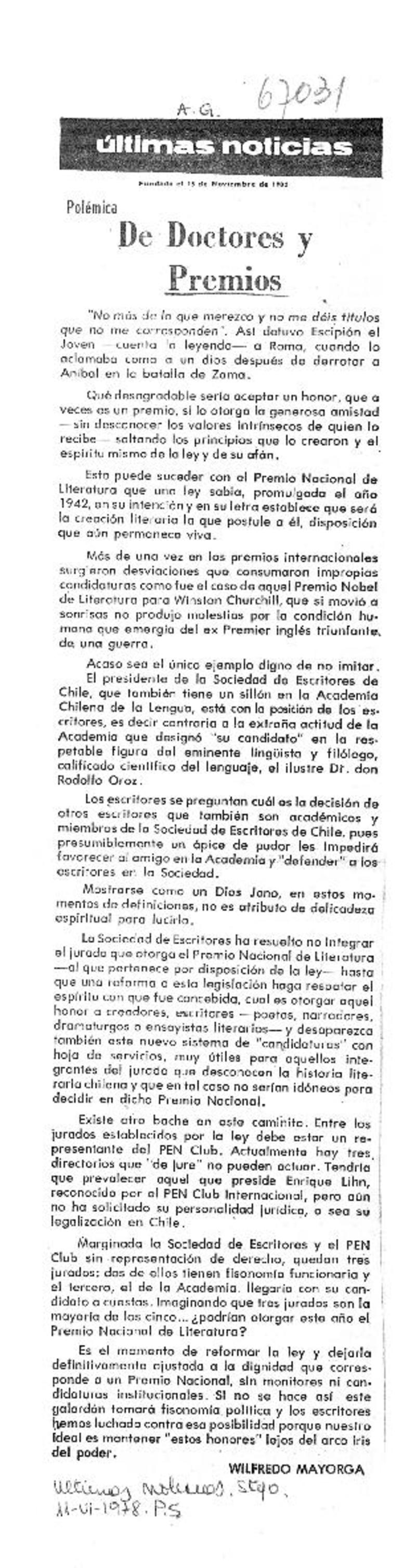 De Doctores y Premios [artículo] Wilfredo Mayorga.