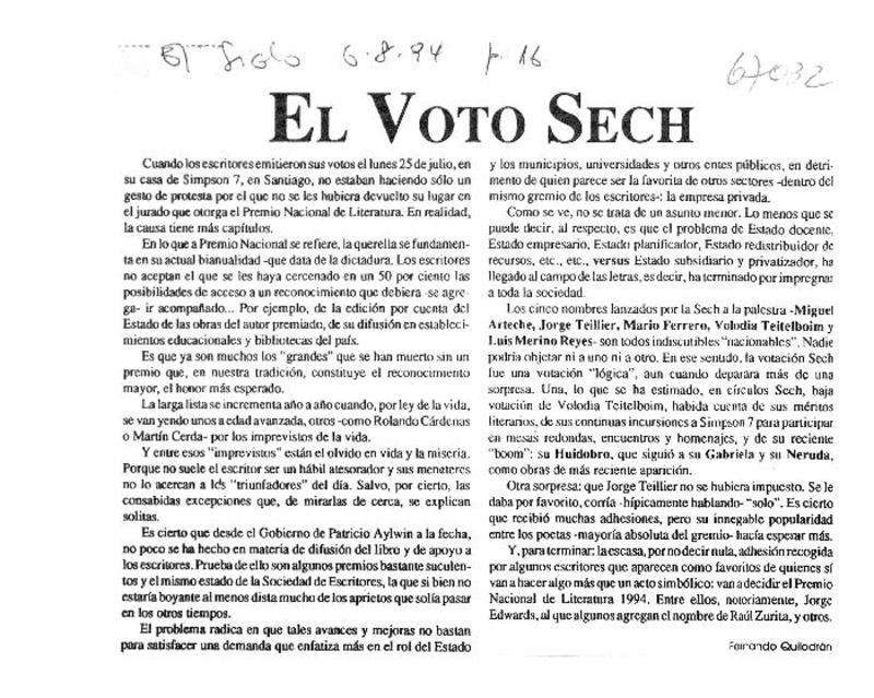 El Voto SECh [artículo] Fernando Quilodrán.