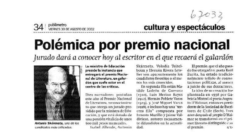 Polémica por premio nacional. [artículo]