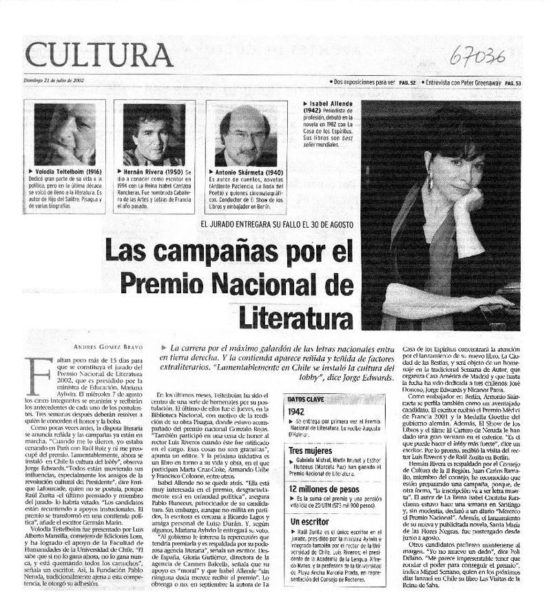 Las campañas por el Premio Nacional de Literatura [artículo] Andrés Gómez bravo.