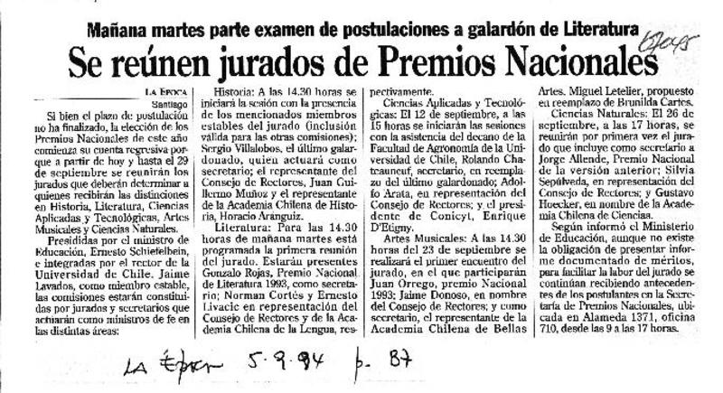 Se reúnen jurados de Premios Nacionales. [artículo]