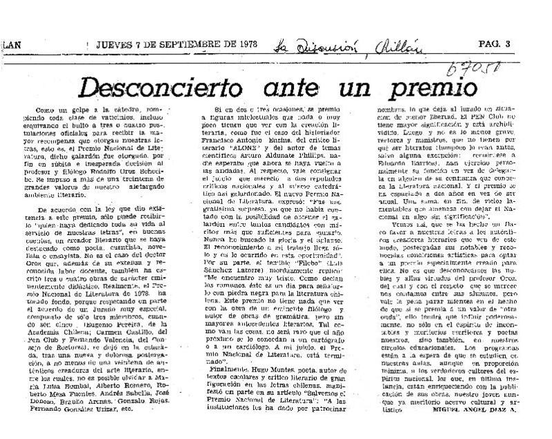 Desconcierto ante un premio [artículo] Miguel Angel Díaz A.