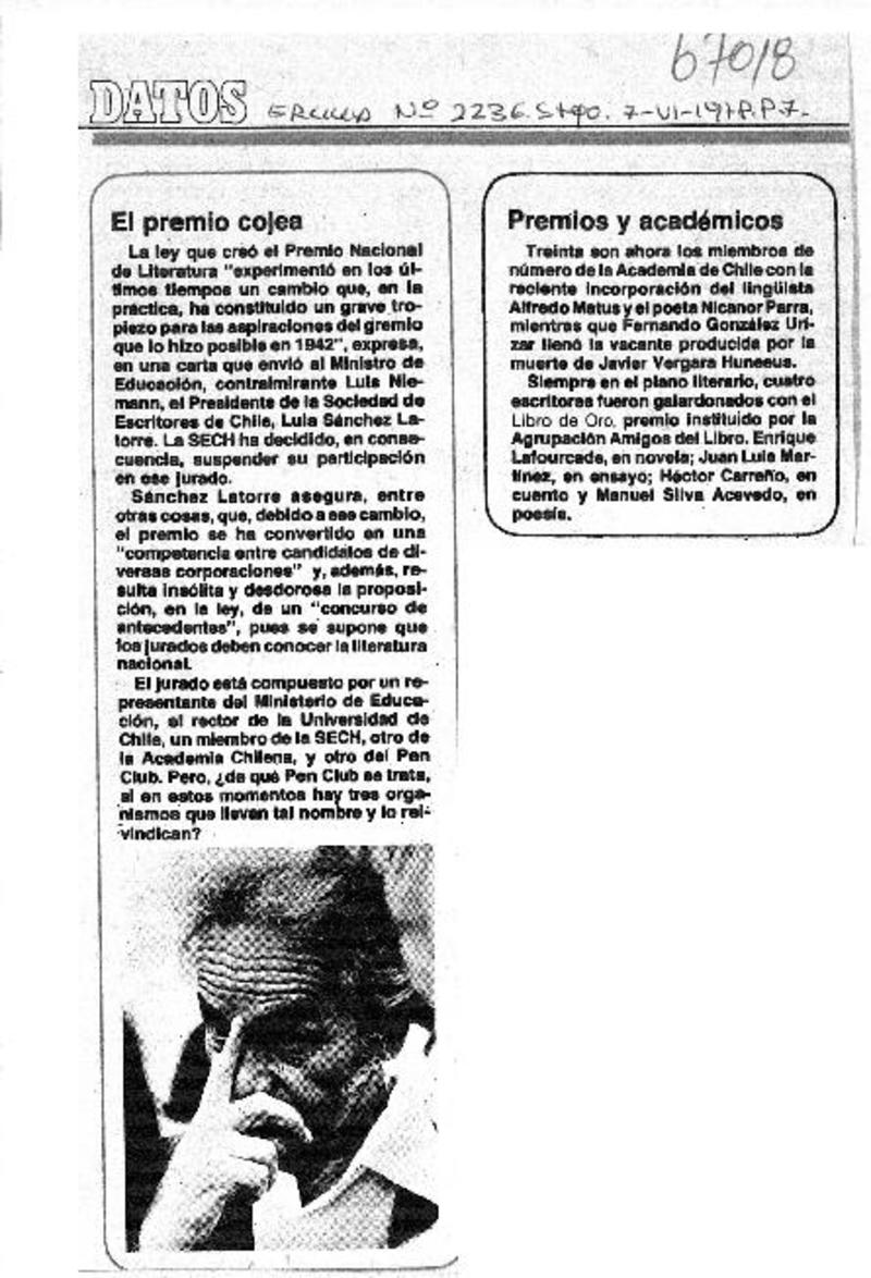 El Premio cojea. [artículo]