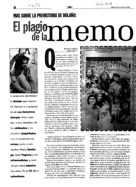 El plagio de la memoria [artículo] Juan Esteban Harrington.