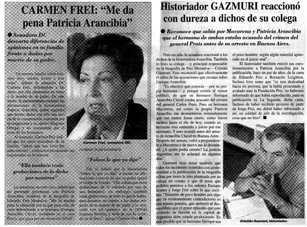 Carmen Frei: "Me da pena Patricia Arancibia" [artículo].