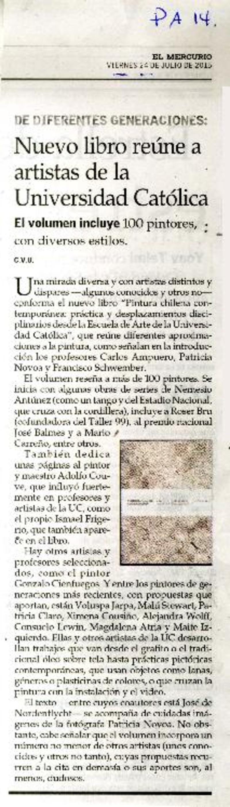 Nuevo libro reúne a artistas de la Universidad Católica [artículo] C.V.U.