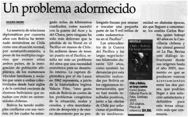 Bustos, Carlos - Pérez Yoma, Edmundo - Autores bolivianos - Pinochet de la Barra, Oscar - Autores chilenos - Chile y Bolivia. Hasta cuándo! - Murillo, Javier - Largo conflicto entre Chile y Bolivia - Chile y Bolivia, un largo camino - Una Misión - Maira, Luis
