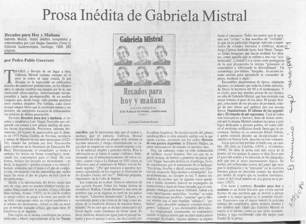 Prosa inédita de Gabriela Mistral [artículo] Pedro Pablo Guerrero.
