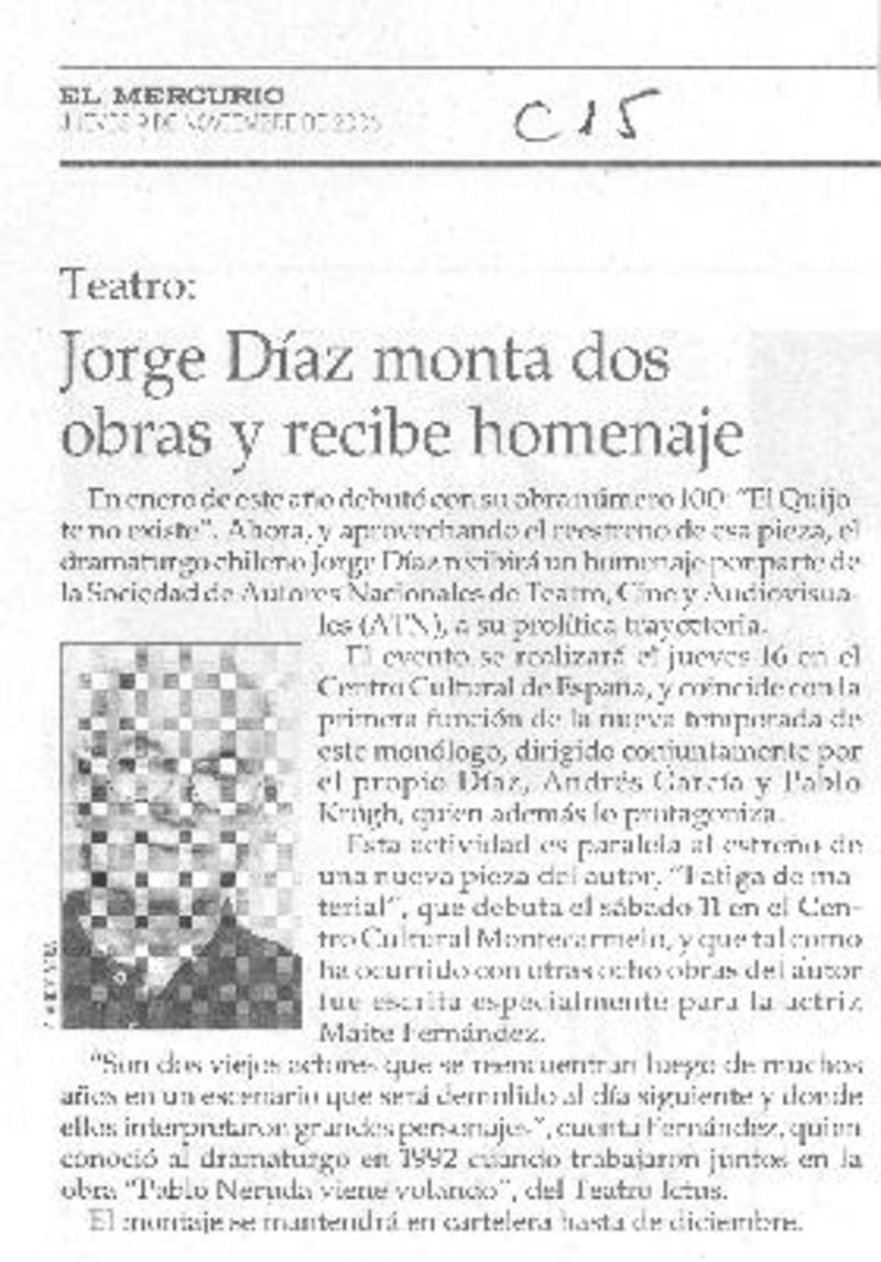 Jorge Díaz existe [artículo] Eduardo Guerrero del Río.